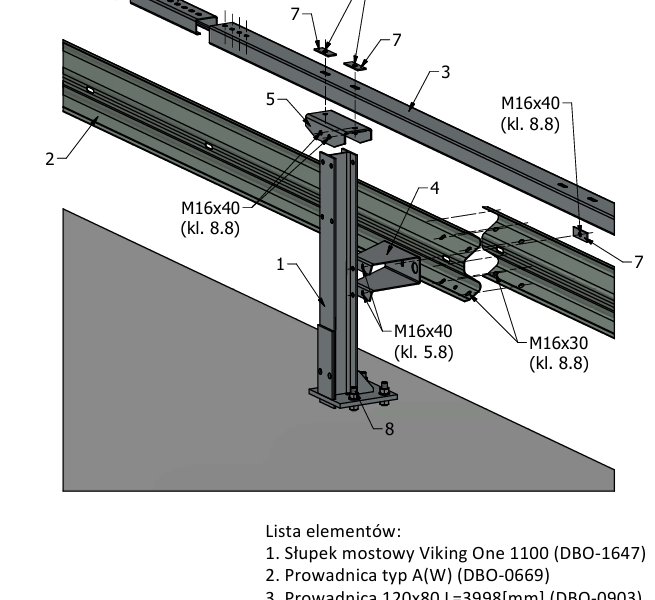 Barieroporęcz mostowa H2W1A słup co 1,33m , h=1200mm