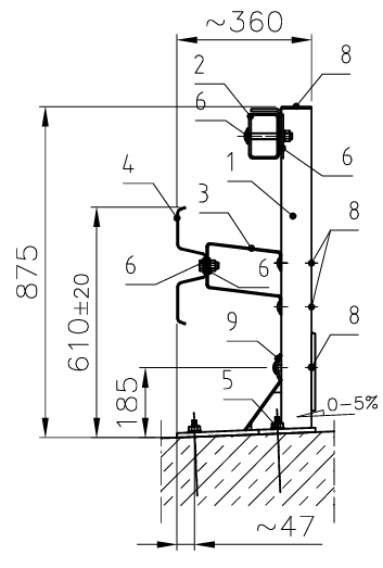 Bariera ma wysokość 0,87 m, szerokość systemu 0,36 m, rozstaw słupków co 2 m, długość słupków 0,87 m. Dzięki zastosowaniu profili prowadzących typu A i B oraz trwałości wg EN ISO 1461 / EN 10346, jest to system odporny na korozję i gotowy na wieloletnią eksploatację.
