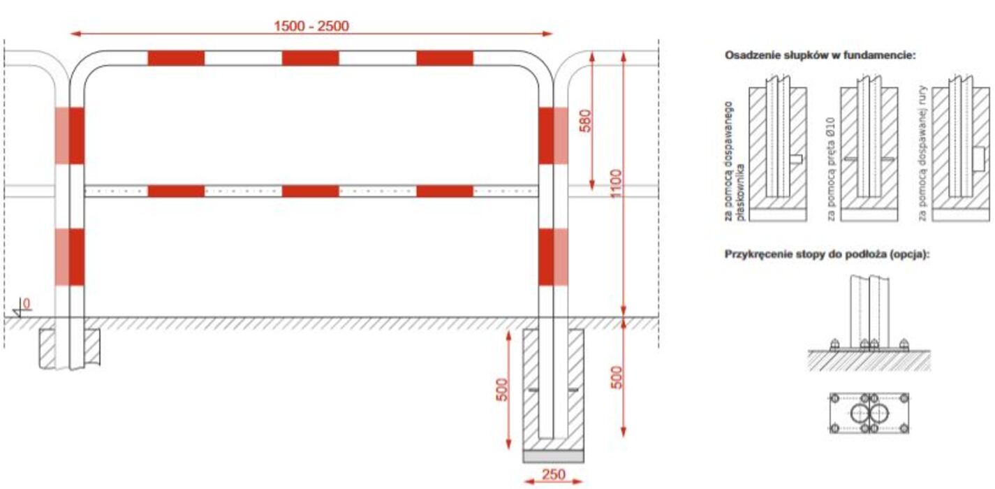 Wysokość po wkopaniu: 1100 mm, 1200mm, 1300mm