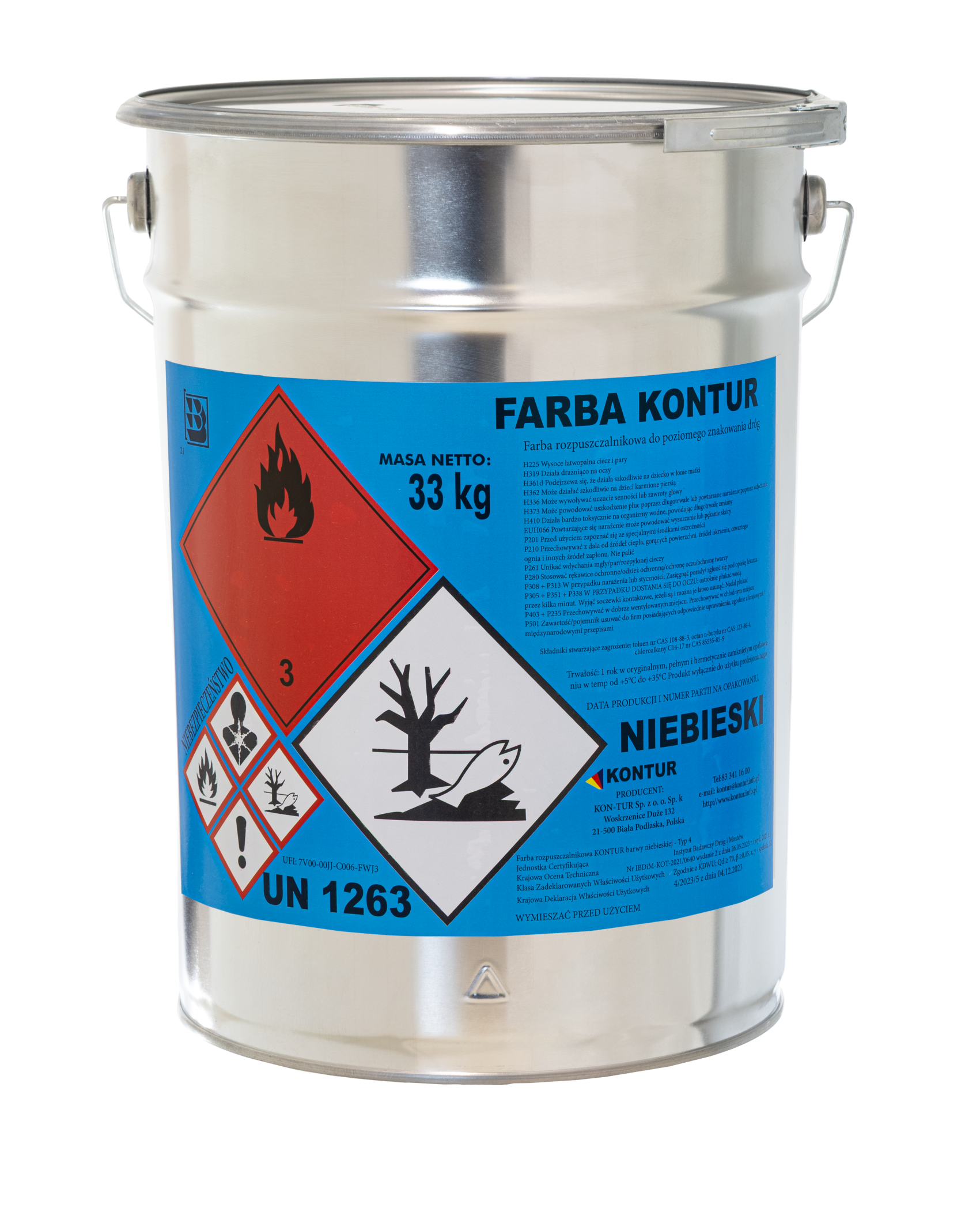 • Farba KONTUR biały: 33 kg, na zamówienie beczki 300 kg lub kontener 1600 kg