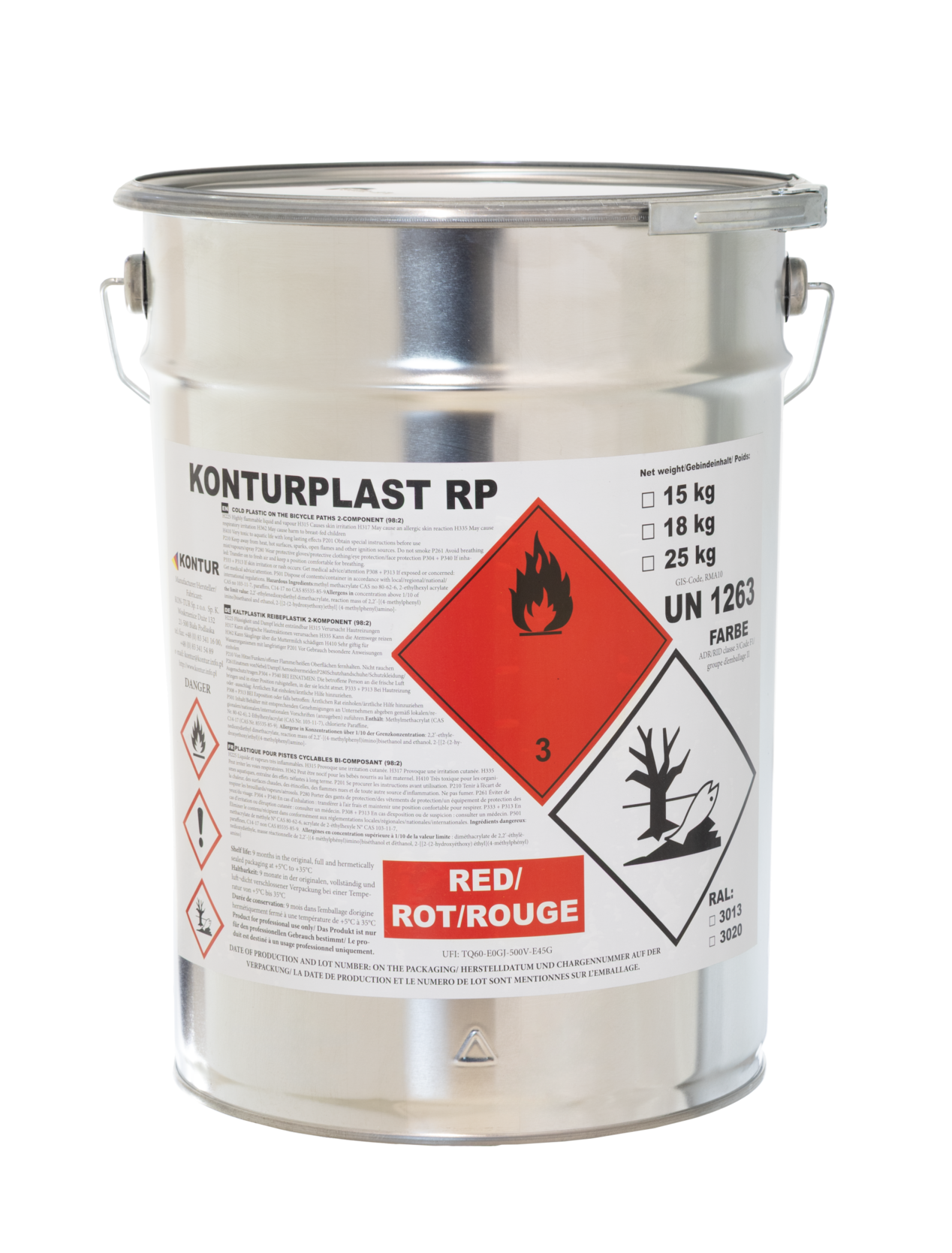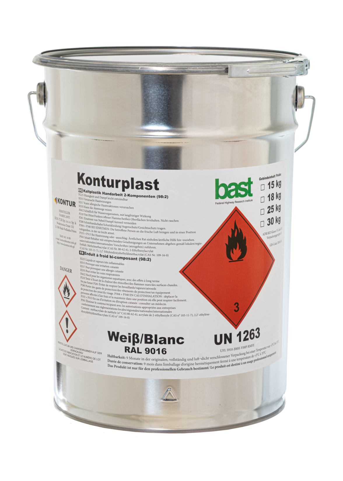 W skład gotowej dostawy wchodzi masa chemoutwardzalna oraz utwardzacz, który pełni rolę katalizatora inicjującego proces wiązania. Aby uzyskać wysoką odblaskowość oznakowania, bezpośrednio po aplikacji należy posypać świeżą warstwę mikrokulkami szklanymi.